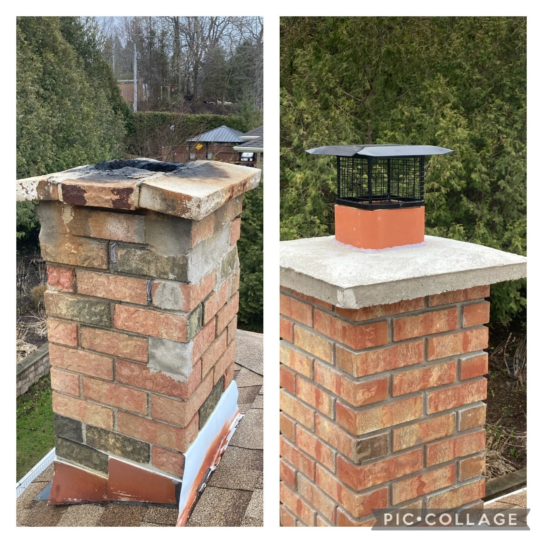 When we rebuild a chimney, we do it properly from the crown down. We carefully match the existing brick so the repair blends seamlessly with your home, then finish it with a poured concrete cap designed to shed water and stand up to decades of weather.